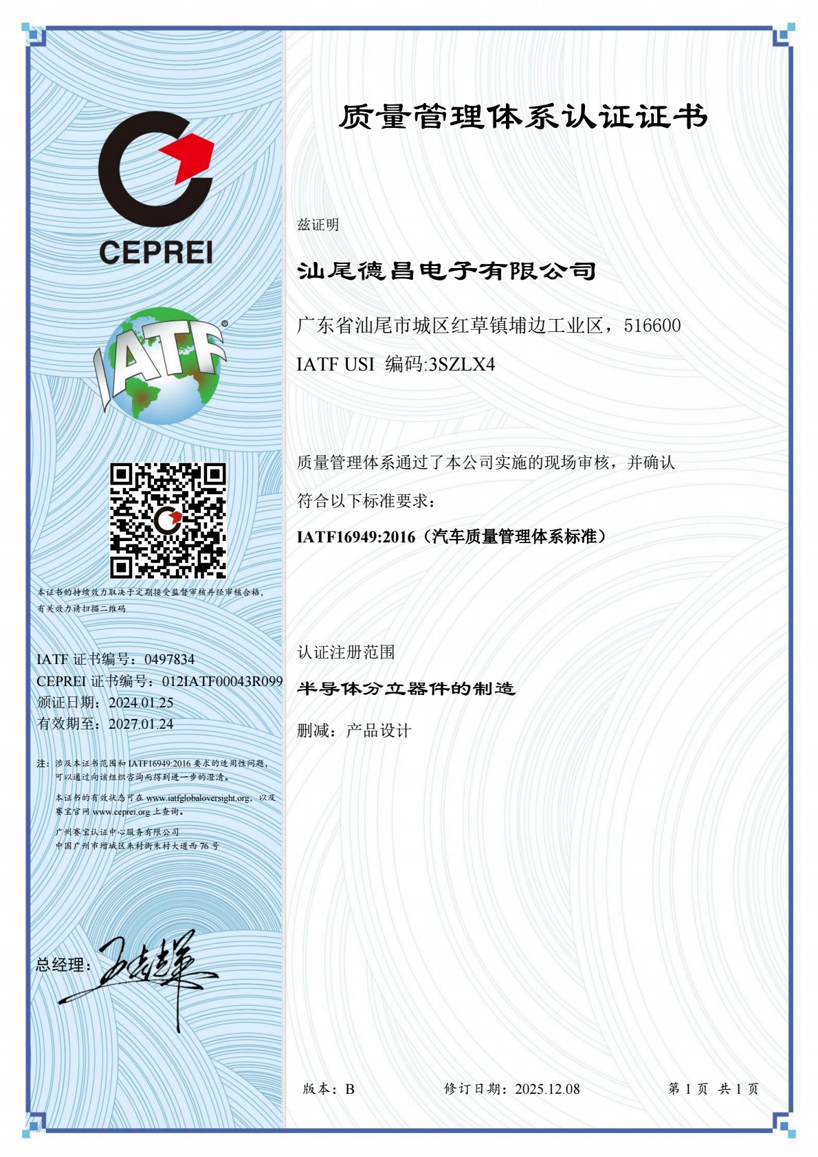 質(zhì)量證書